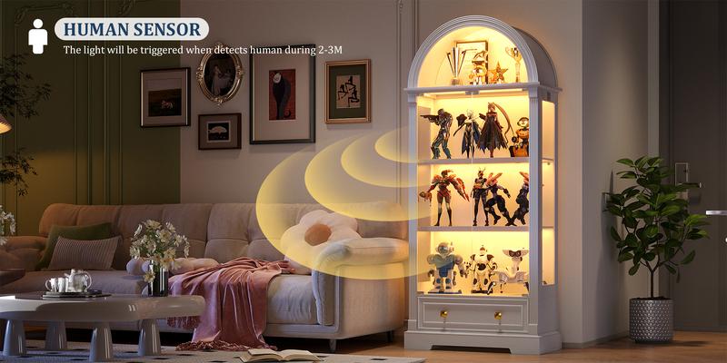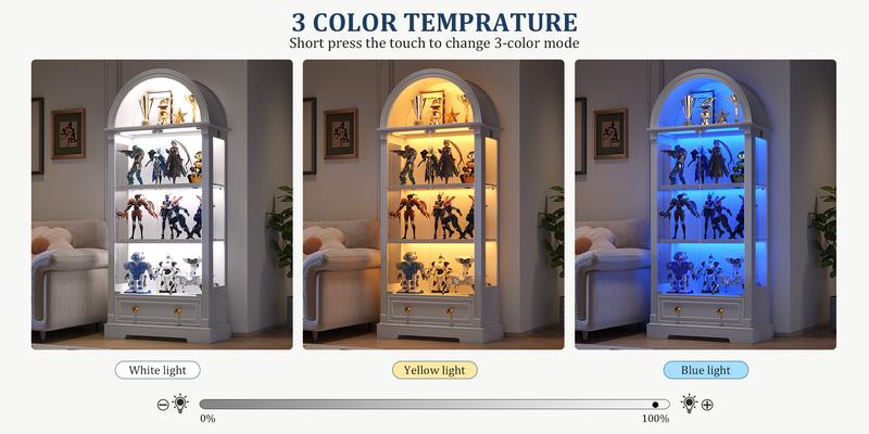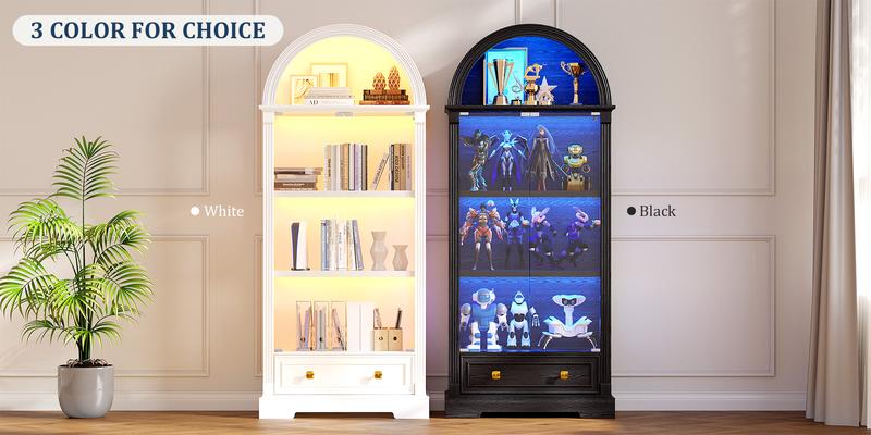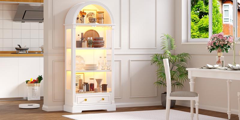 The MIUFarmhouse Arched Cabinet is a versatile piece for any room. It stands 71” tall, offering ample storage and display space. The arched design adds a touch of modern elegance. Perfect for living rooms or offices, this cabinet combines functionality with aesthetics.